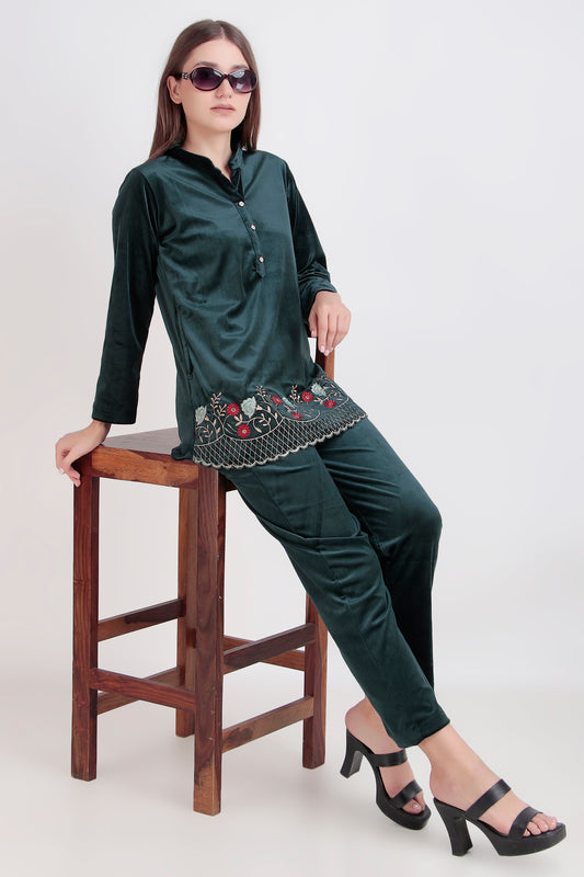 Corduroy Co-ord Set - Embroidered, Half-Buttoned Design